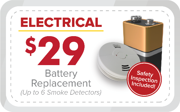 In honor of Fire Safety Month, we'll replace the batteries in up to 6 smoke detectors AND perform a complete electrical safety inspection for just $29 until October 31st.