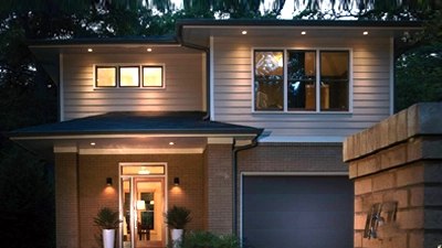 To create a dramatic and inviting look, illuminate the exterior of your home with soffit lighting. You can even add colored bulbs during different seasons to make your home festive! (Red, white, and blue lights, anyone?) However, installing soffit lighting is pretty labor intensive. You might want to enlist the help of a licensed electrician to make sure it’s done safely and correctly.