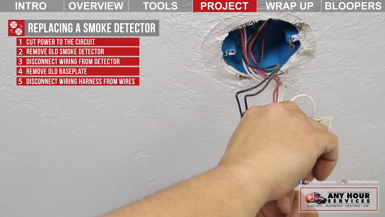 The new smoke detector wiring harness should have the same colors as the old smoke detector. You should have a black wire (which is the hot wire), a white (which is your neutral), and a red one (this is a communication wire for interconnected smoke detectors). It’s important to connect all of them correctly so they go off together and protect you no matter where you are and where the fire is.